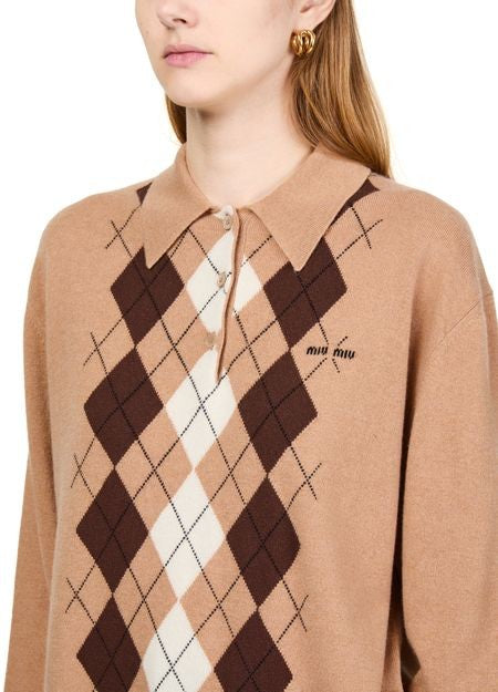 説明 : Embroidered "miu miu" logo, diamond pattern, cuffed sleeves, long-sleeved, button fastening.