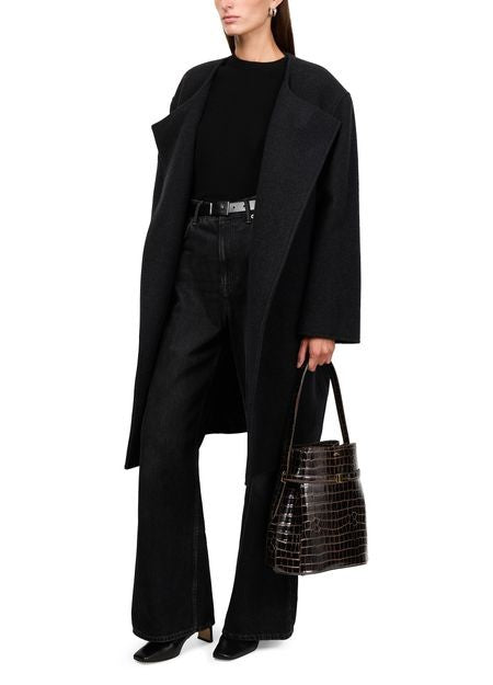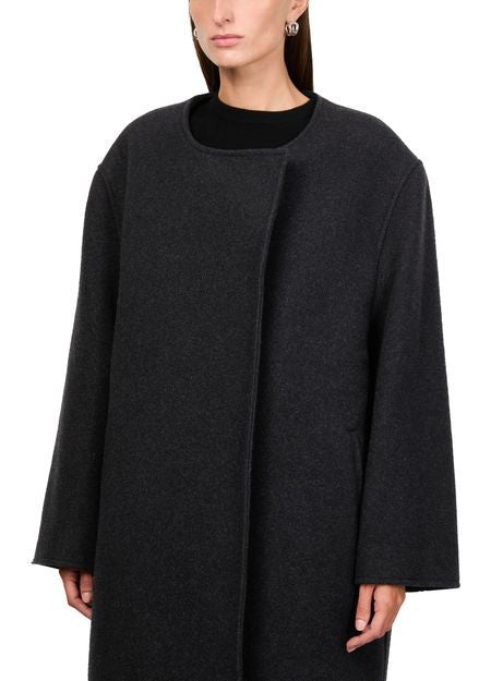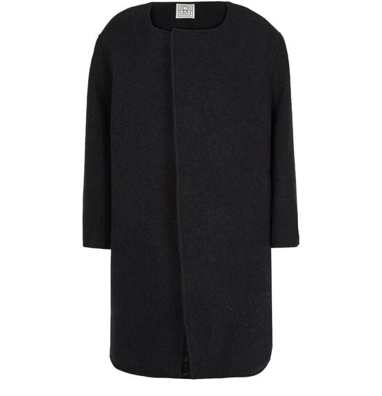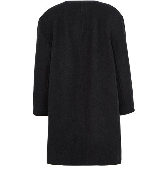 説明 : Knee length, collarless, long-sleeved, concealed closure.