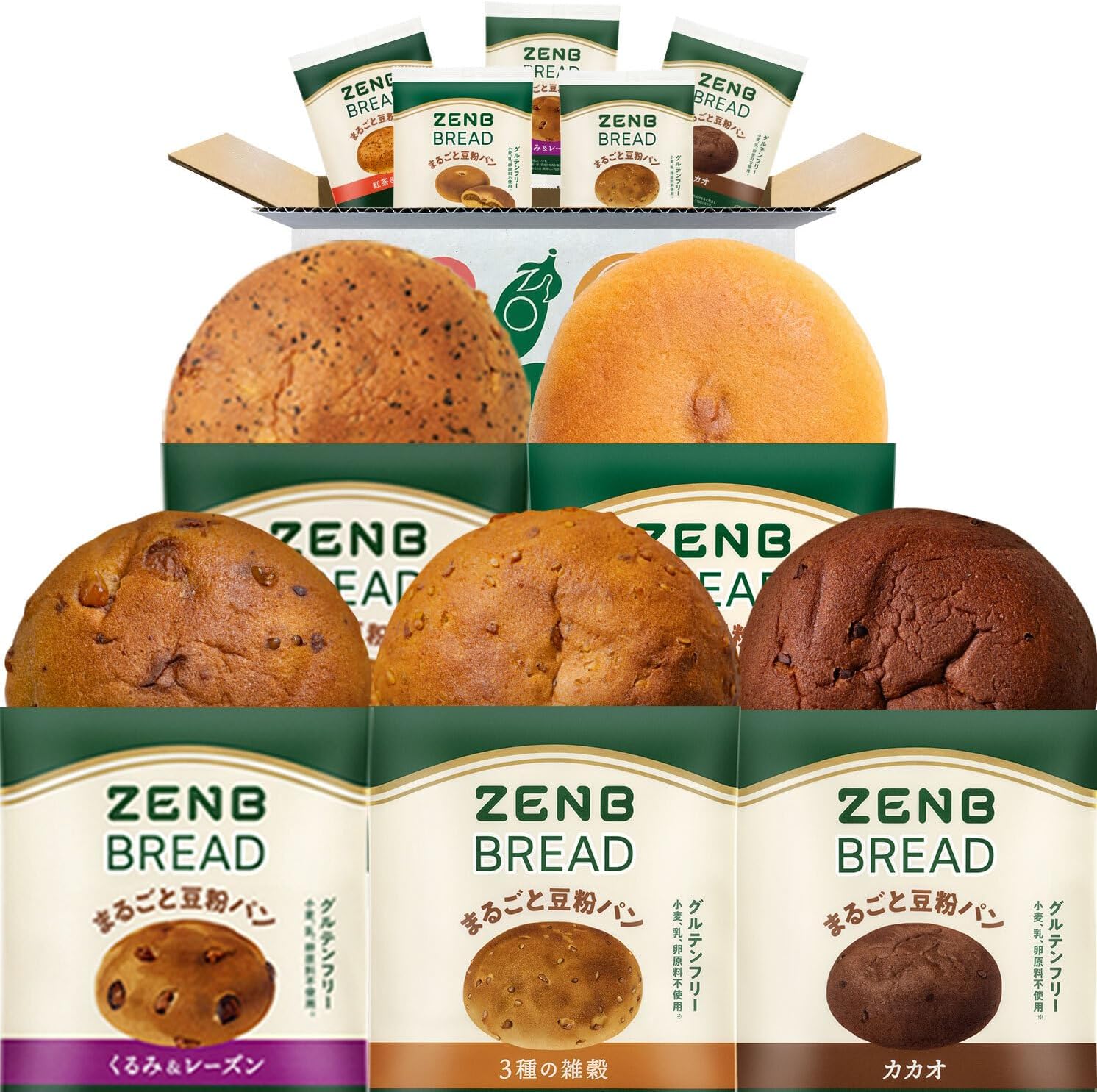 ZENB ZENB Bread, Gluten-Free Bread, 5 Types, 10 Pieces (Walnuts, Raisins, Cacao, 3 Types of Millet, Tea & Orange, Kinakoan (2 each), Sugar Reduction, Sugar Control, Dietary Fiber Supplement During