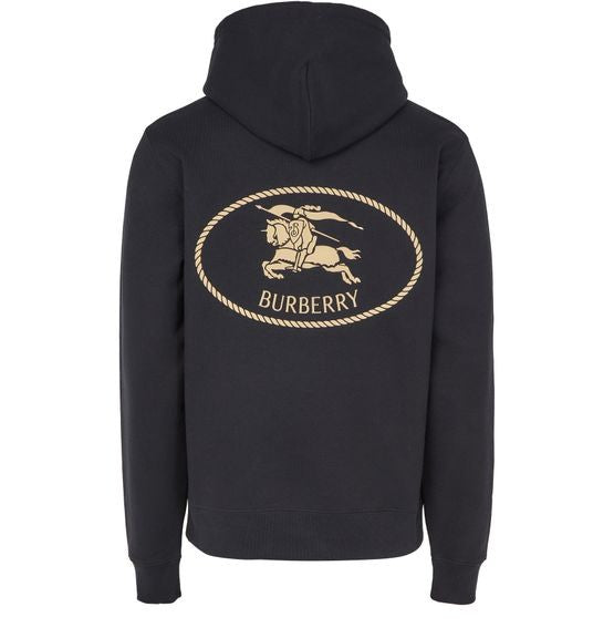 説明 : Knight design equestrian emblem, hood, long-sleeved, cuffed sleeves, logo at the back, embroidered chest logo, kangaroo pocket.