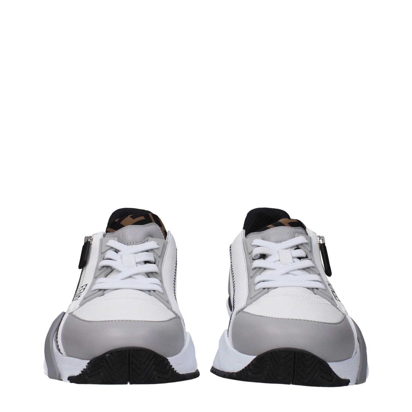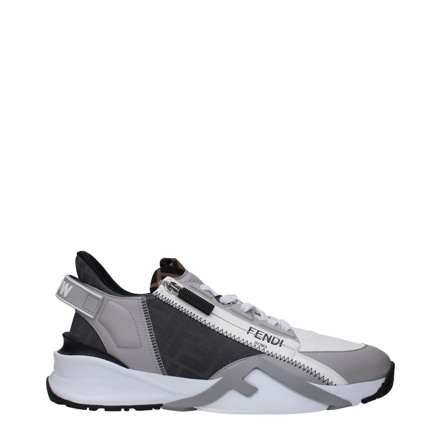 Fendi フェンディスニーカーフローウーマンレザーホワイト/スチール