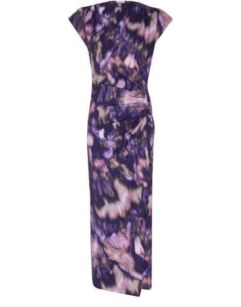 説明 : ドレープディテール, アップリケロゴ, プリント, 総柄, 目に見えるステッチ, ミディドレス, ハイネック, ショートスリーブ, カクテル&イブニング, ニットドレス.