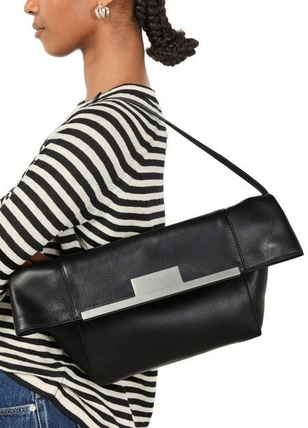 説明 : 手持ち, 肩掛け, 調節可能なストラップ, フラップ開閉式, マグネットクロージャー, 飾りステッチ, 刻印ロゴ, 前面ロゴ, ミニバッグ, シルバーフィニッシュ.