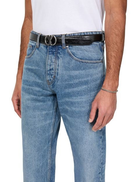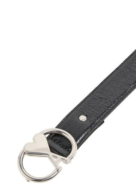 Descrizione: Chiusura con bottone automatico, logo argentato, cinturino in pelle, parti metalliche color argento, fibbia con logo, cinturino sui fianchi.