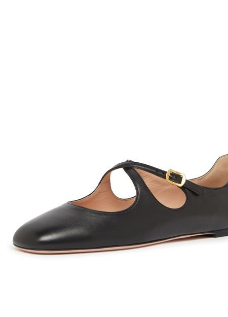 Descrizione: Cinturini con fibbia, logo applicato, cuciture a vista, ballerine, finitura oro, suola a contrasto, punta tonda, chiuse.