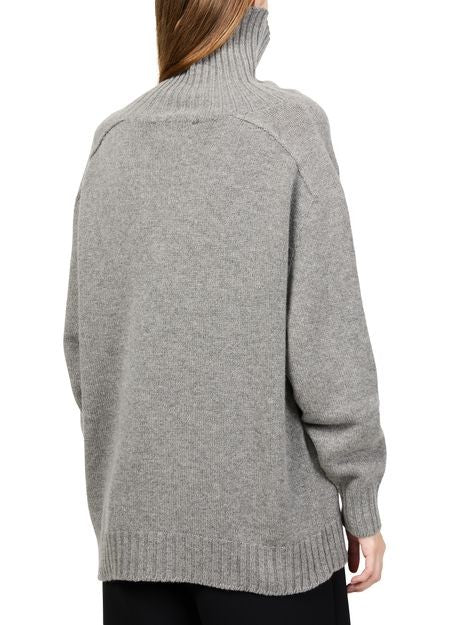 Descrizione: Maglia a coste, collo alto, maniche con polsini, maniche lunghe.