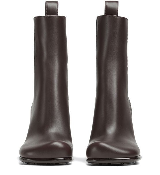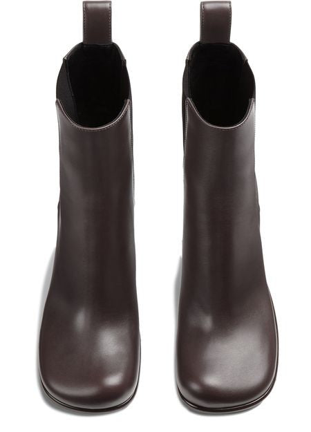 Descrizione: Stivaletti Chelsea in pelle liscia con punta quadrata, elastici laterali, design slip-on, cinturino posteriore, suola dentellata e tacco a stivale.