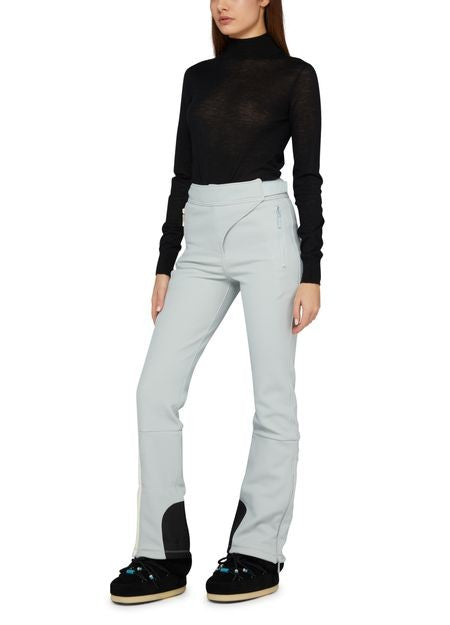 Descrizione: Chiusura con cerniera nascosta e bottone automatico, logo ricamato, logo sul retro, cuciture a vista, lunghezza alla caviglia, tasche laterali, pantaloni casual, taglio svasato.