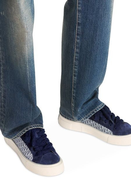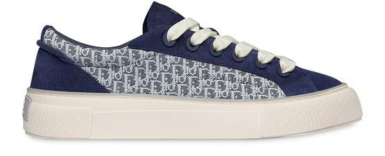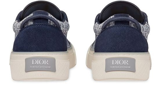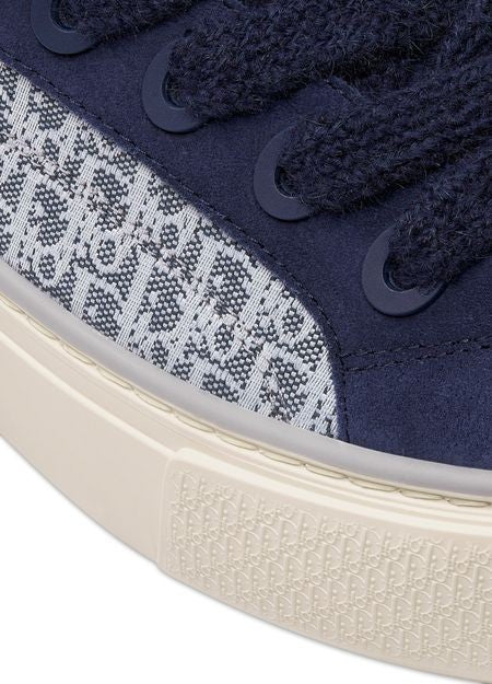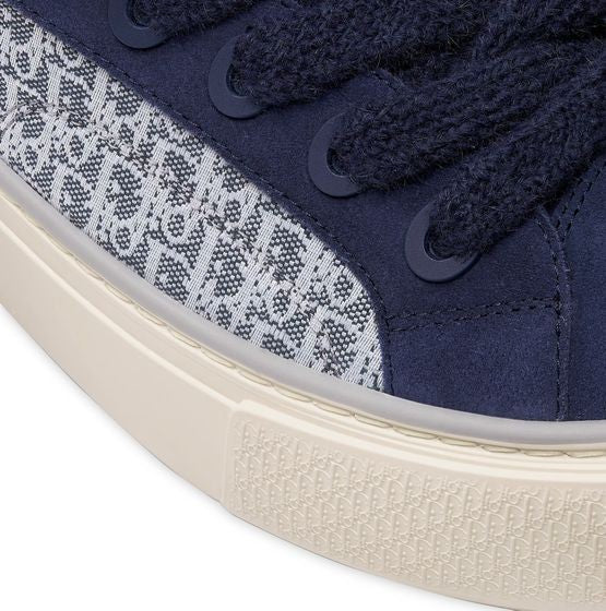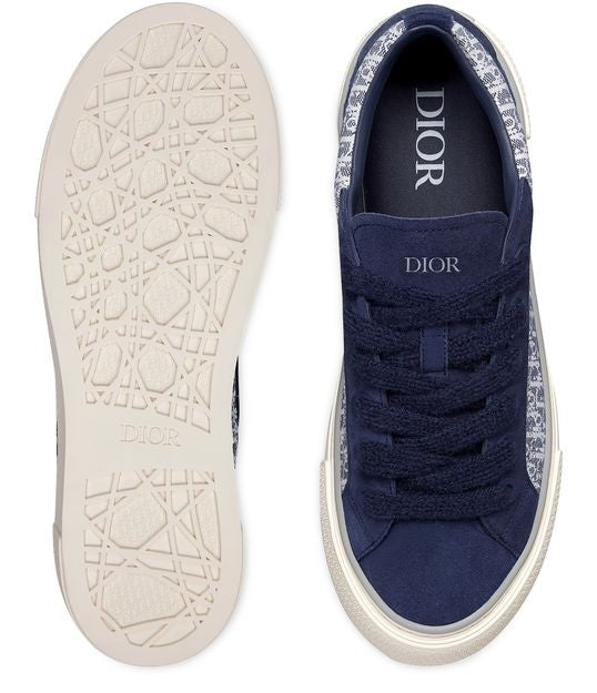 Descrizione: Jacquard Dior Oblique blu navy e bianco, inserti in pelle scamosciata blu navy, firma Dior in rilievo sulla linguetta, firma Dior 30 Avenue Montaigne in rilievo sul retro, scarpe basse, occhielli in ottone opaco, chiusura con lacci in mohair, collo imbottito, linguetta posteriore, fodera in pelle, suola in gomma Dior Oblique bianca.
