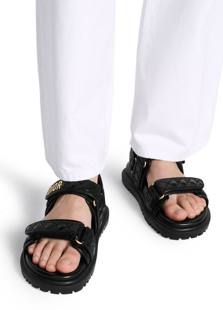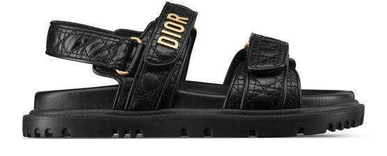 Descrizione: Firma Dior in metallo color oro, due cinturini regolabili con gancio e passante, soletta interna in pelle dalla forma ergonomica, suola in gomma morbida e leggermente ruvida con tacche incise con il simbolo della stella portafortuna Dior. Prodotto in Italia.