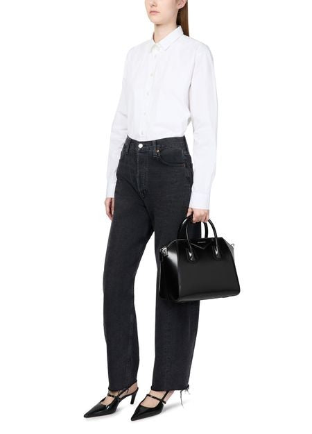 Materiale: Materiale principale: 100% pelle di vitello, Fodera: 95% cotone, 5% acrilico, Perline: 100% zama. Colore: Nero. Paese di origine: Italia. Dimensioni: Larghezza 28 cm, Altezza 25 cm, Profondità 15 cm.