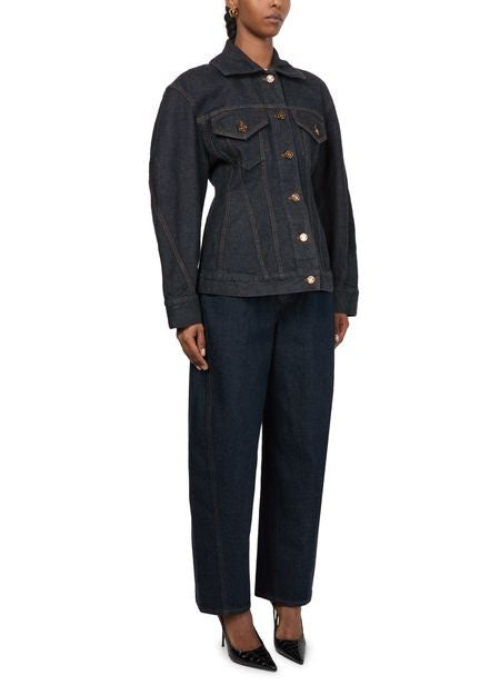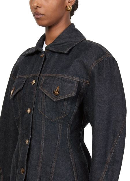 Descrizione: Denim, vestibilità slim, chiusura con bottoni, maniche lunghe, due tasche applicate sul petto.