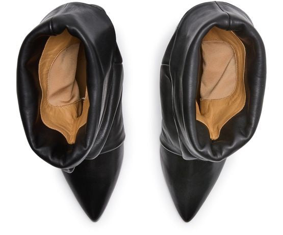 Descrizione: pelle liscia, tacco basso, tacco unico, punta affusolata.