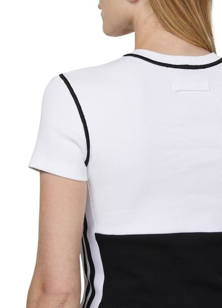 Descrizione: Logo frontale, logo applicato, cuciture a vista, lunghezza regolare, maniche corte, girocollo, t-shirt.