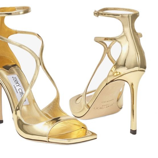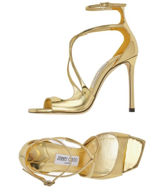 Descrizione: Pelle metallizzata, punta quadrata aperta, forma appuntita, cinturino con fibbia, finitura dorata, soletta con logo, tacco a spillo.