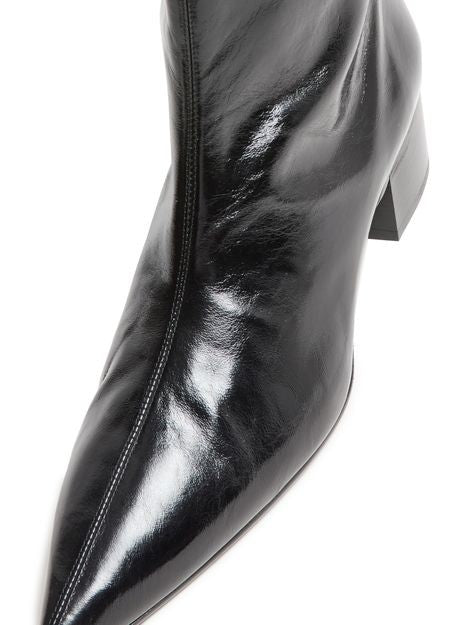 Descrizione: Cuciture a vista, stivali, tacco basso, tacco a blocco, punta affusolata, chiusi.