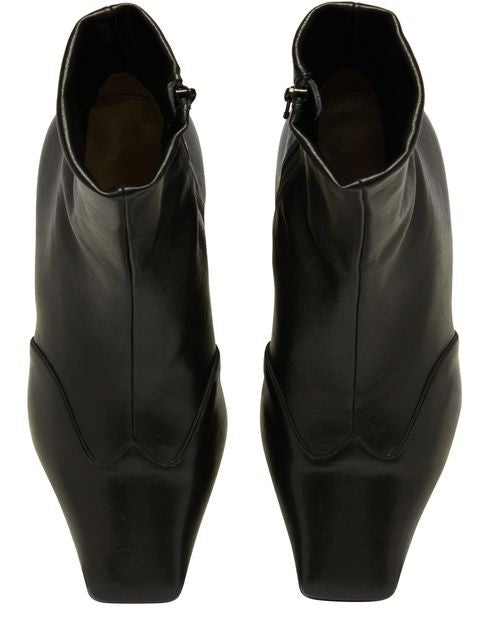 Descrizione: Cuciture a vista, tacco a blocco, tacco basso, stivali, punta quadrata, chiusi, cerniera laterale.