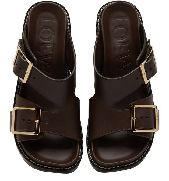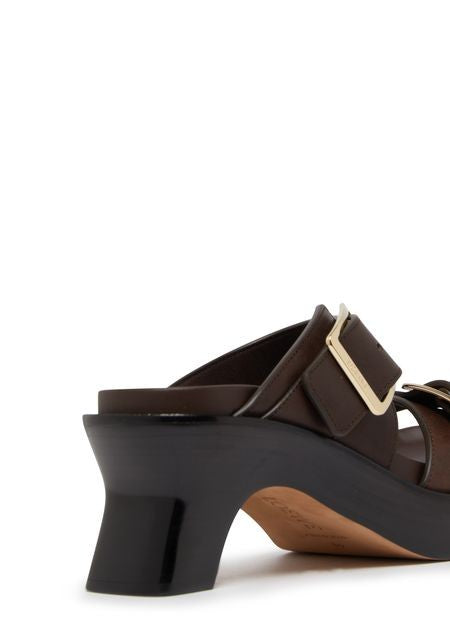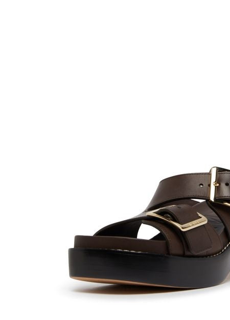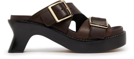 Descrizione: Punta tonda aperta, finitura dorata, tacco alto, tacco a blocco, logo inciso, logo laterale, sandali e ciabatte, cinturini con fibbia.