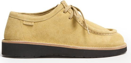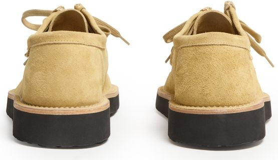 Descrizione: Scarpe stringate, pelle scamosciata, tacco piatto, tacco basso, punta tonda, suola esterna spessa, lacci e cinturino, cuciture a vista.