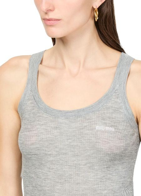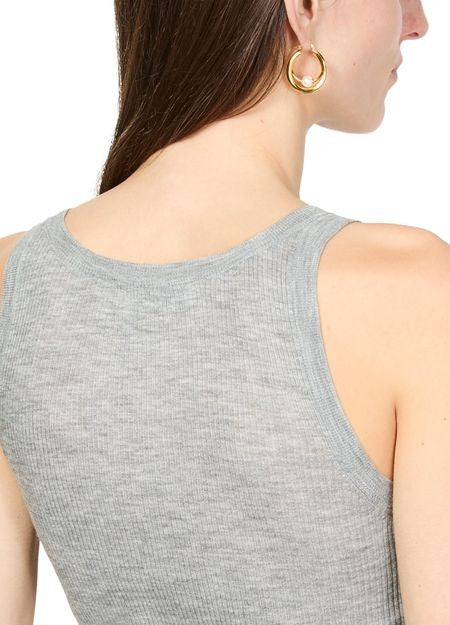 Descrizione: Canotta e canotta con logo sul petto, taglio corto, scollo rotondo, senza maniche.