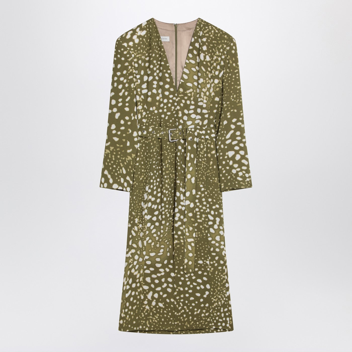 • Dries Van Noten Dress In Viscose With Khaki Print, Featuring A V-Neck, Long Sleeves With Buttoned Cuffs, An Adjustable Waist Belt, And A Front Slit. • Model Wears Size 36 FR Model Measurements: Height: 180 Cm Chest: 85 Cm Waist: 66 Cm Hips: 89 Cm • 100% Viscose