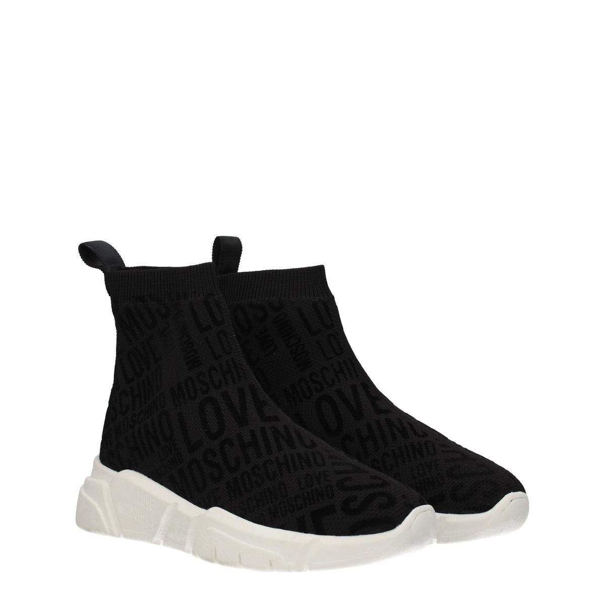 The article with MPN JA15523G1GIZG000 and code F71591 in black fabric is part of the sneakers category of the designer Love Moschino. It has features such as logo, side logo.