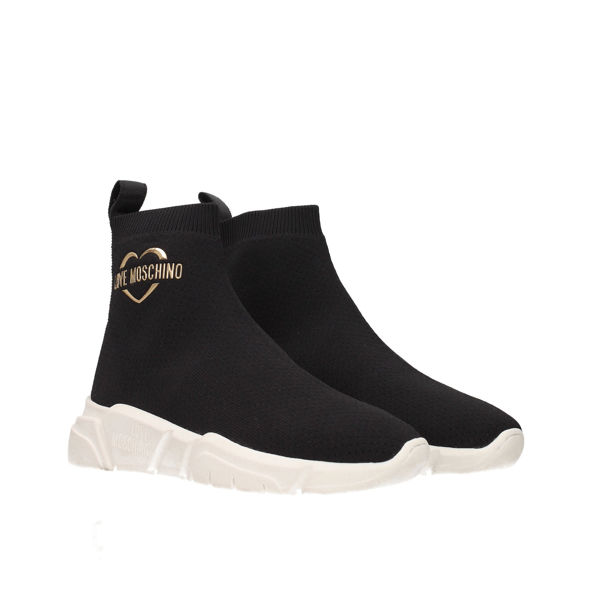 The article with MPN JA15413G1FIZ7000 and code F68800 in black fabric is part of the sneakers category of the designer Love Moschino. It has features such as side logo.