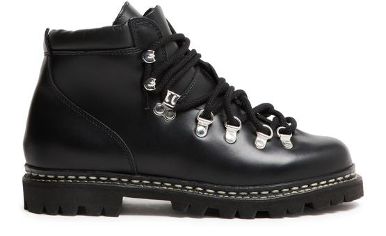 Descrizione: Stivali, logo inciso, pelle liscia, tacco basso, chiusi, punta tonda, suola dentellata, allacciatura alla caviglia, stivaletti stringati, cuciture a contrasto.