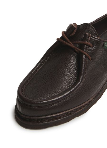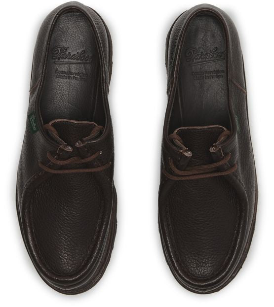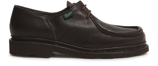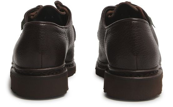 Descrizione: Scarpe stringate, scarpe formali, pelle martellata, tacco a blocco, tacco basso, chiuse, punta tonda, suola esterna spessa, soletta interna con logo stampato, derby.
