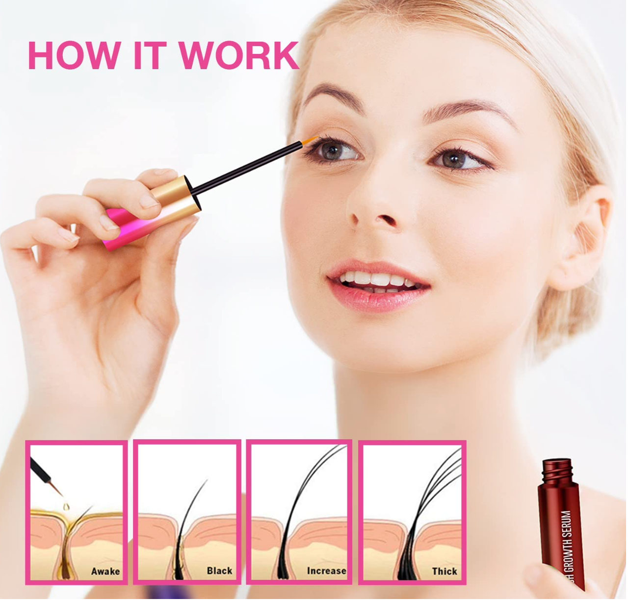 Siero per la crescita delle ciglia e potenziatore per sopracciglia di alta qualità di VieBeauti, siero per ciglia più lunghe, più folte e più folte (3 ml) rosso