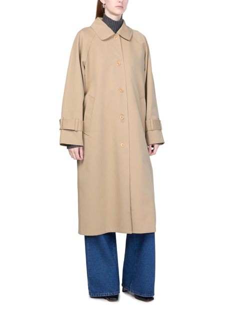 Descrizione: Chiusura frontale con bottoni, tasche laterali lunghe a filetto, maniche lunghe, colletto, classico/soprabito.