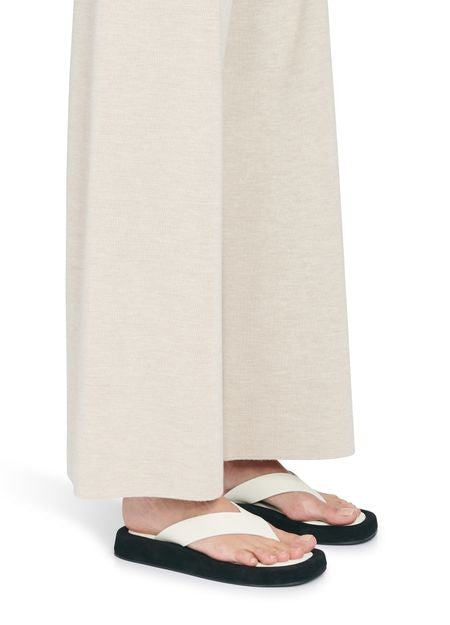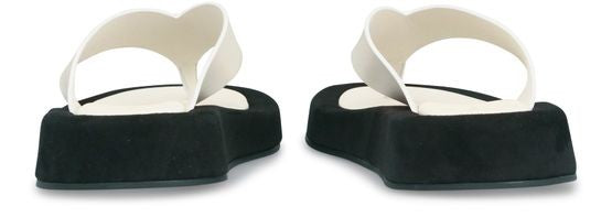 Descrizione: Pelle liscia, pelle scamosciata, punta tonda aperta, soletta con logo, logo con lettera dorata, suola spessa.