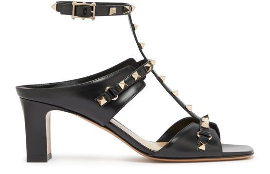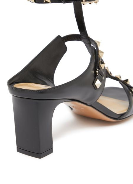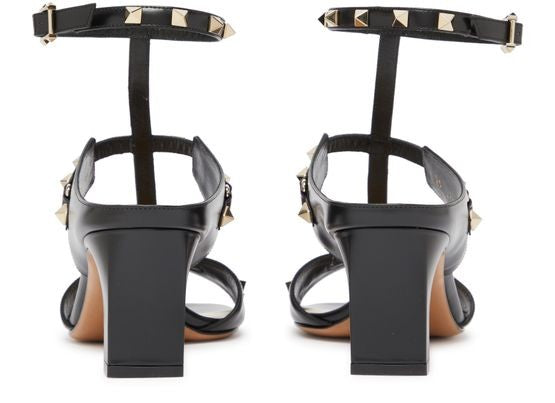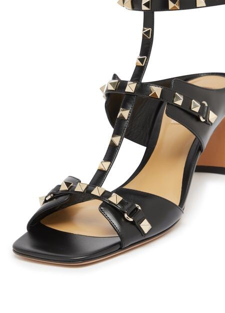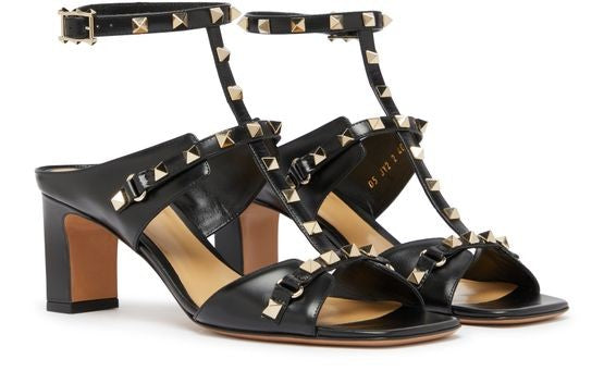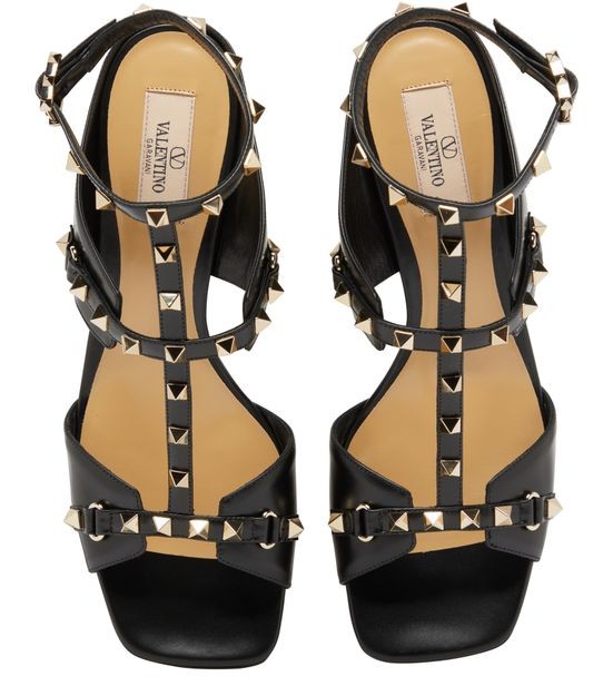 Descrizione: Cuciture a vista, logo applicato, cinturino alla caviglia con fibbia, sandali e ciabatte, finitura dorata, punta quadrata aperta, suola a contrasto, tacco medio, tacco a blocco.
