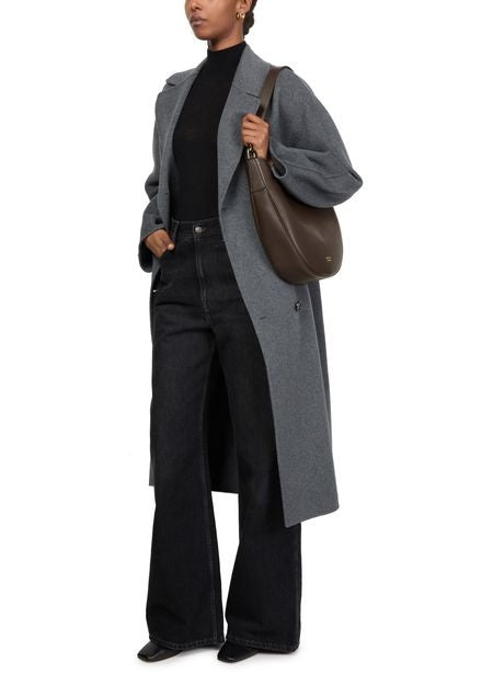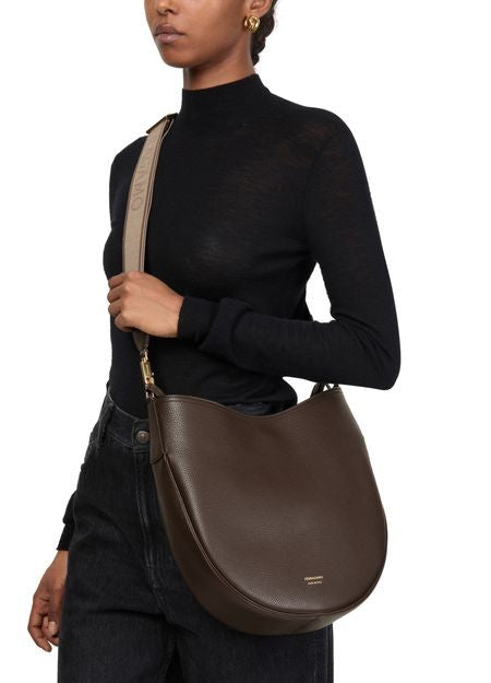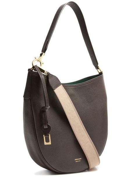 説明 : Shoulder bag, crossbody bag, grained leather, single handle, wide strap, detachable strap, single compartment, zippered interior pocket, magnetic closure, visible topstitching.