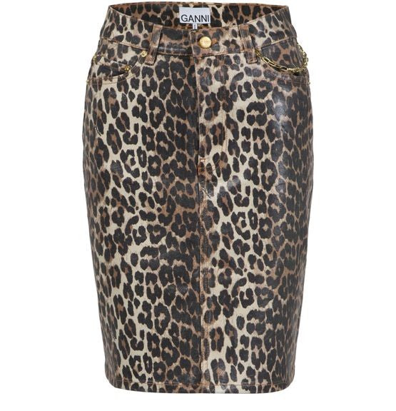 説明 : ボタン&コンシールファスナー開閉, プリントロゴ, 目に見えるステッチ, 膝丈, サイドポケット, バックパッチポケット, アニマルプリント, ペンシルスカート, ベルトループ.