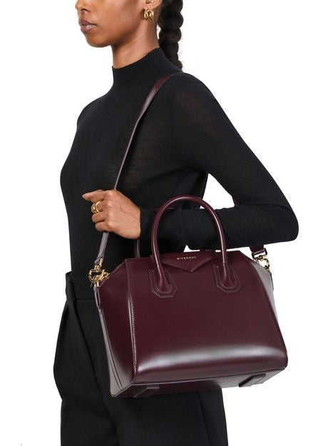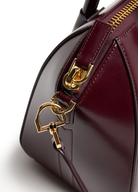 説明 : Shoulder bag, crossbody bag, double handles, leather handle, thin strap, detachable strap, front logo, logo in gold letters, smooth leather, zipper closure.
