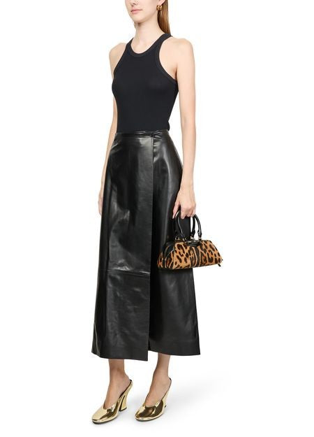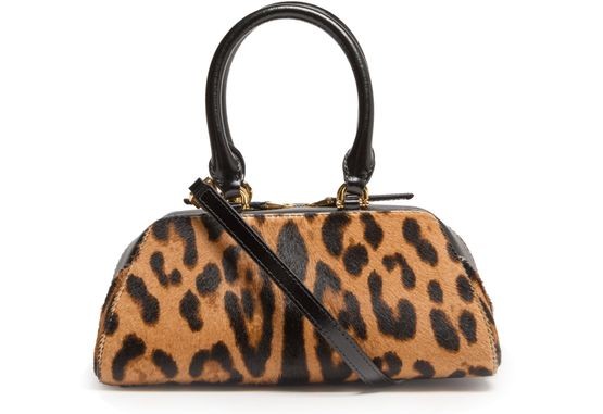 説明 : Mini bag, crossbody bag, double handles, leather handle, thin strap, detachable strap, front logo, leopard print, grained leather, zipper closure.