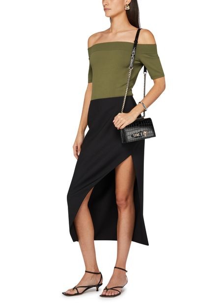 説明 : プリントロゴ, 銀文字ロゴ, シングルコンパートメント, シングルハンドル, 肩掛け, チェーンストラップ, ナローストラップ, フラップ開閉式, スナップボタン留め, シルバーフィニッシュ.
