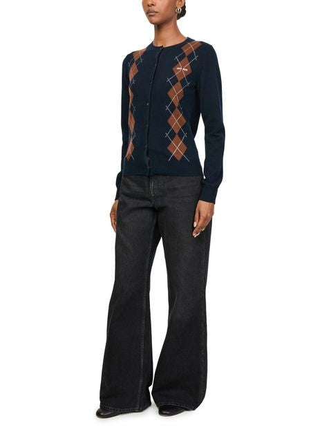 説明 : Embroidered "miu miu" logo, diamond pattern, cuffed sleeves, long-sleeved, button fastening.
