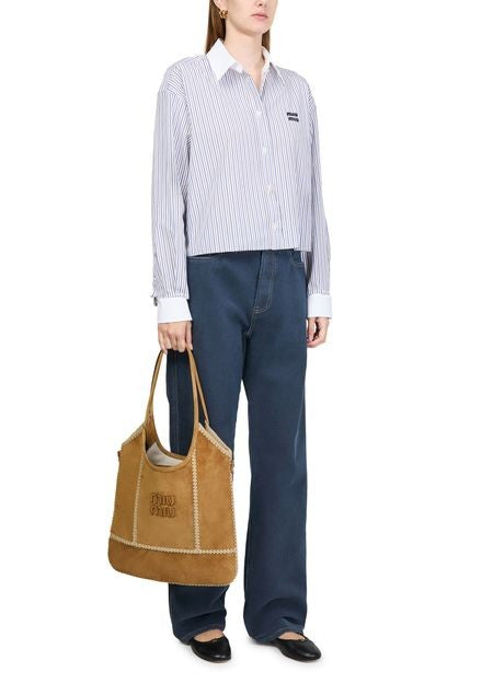 MIU MIU Ivy suede and crochet tote bag