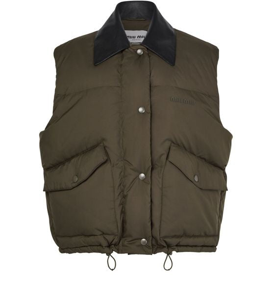 MIU MIU Sleeveless puffer jacket with leather collar