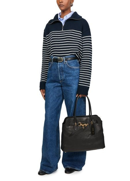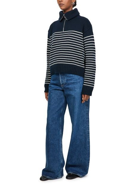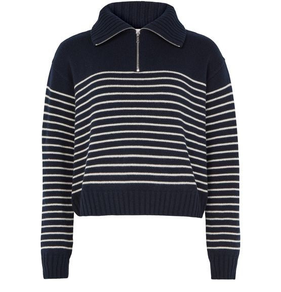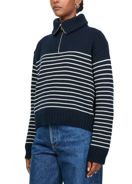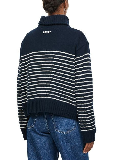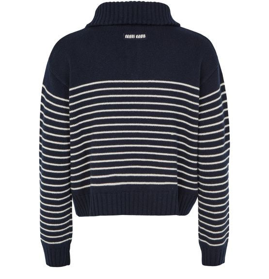 説明 : Embroidered "miu miu" logo, striped print, crop, funnel neck, cuffed sleeves, long-sleeved, zipper closure.