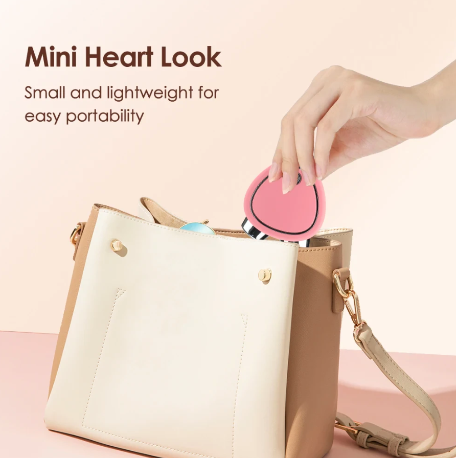 - Convenient and easy to carry: USB charging, heart-shaped appearance, compact, suitable for putting in wallets, bags and cosmetic bags, and can be used anytime, anywhere;