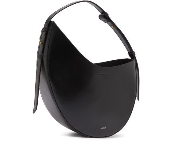 説明 : シルバーフィニッシュ, シングルハンドル, 前面ロゴ, 銀文字ロゴ, ファスナー付き内ポケット, 飾りステッチ, 調節可能なストラップ, 手持ち, ナローストラップ.