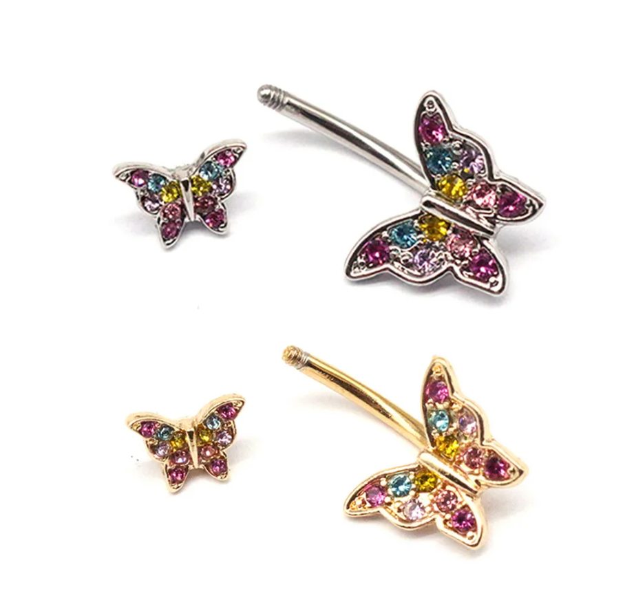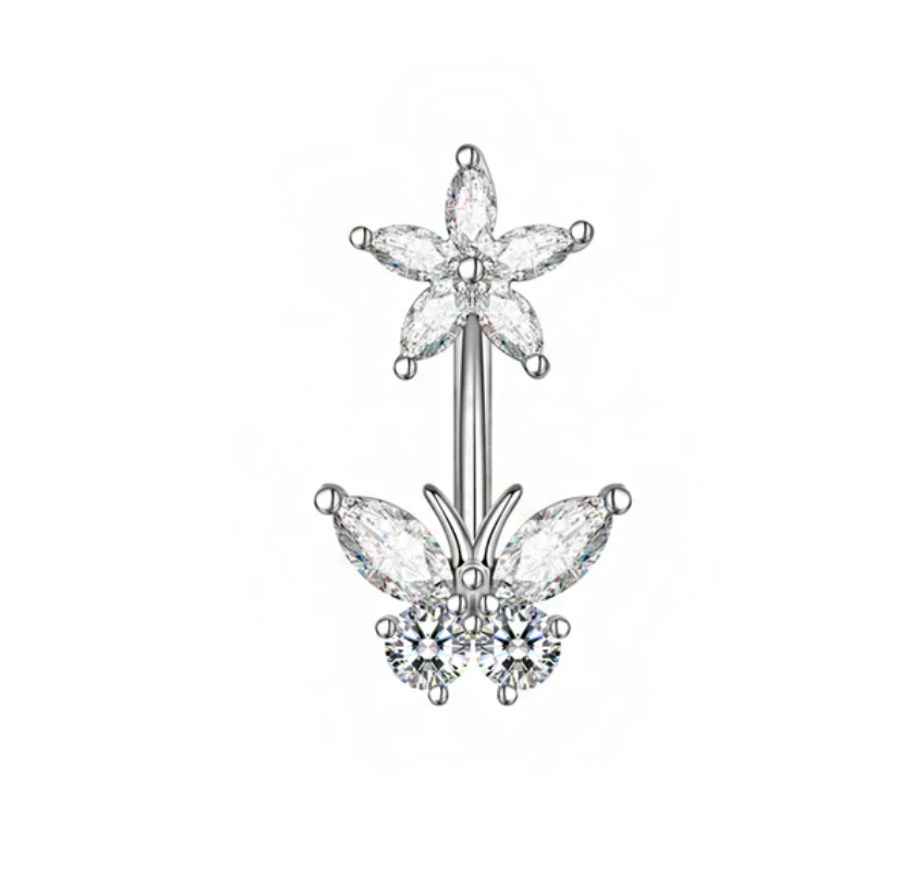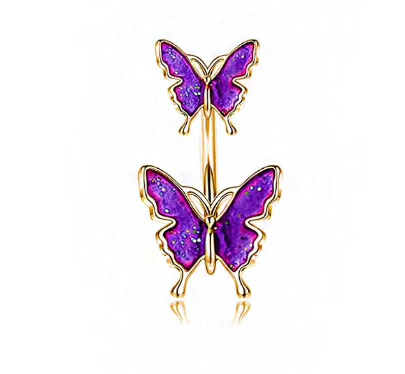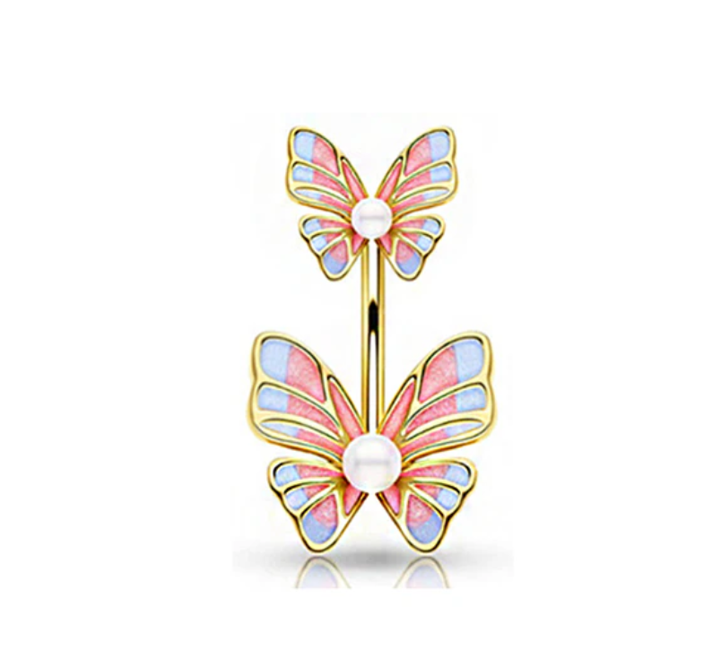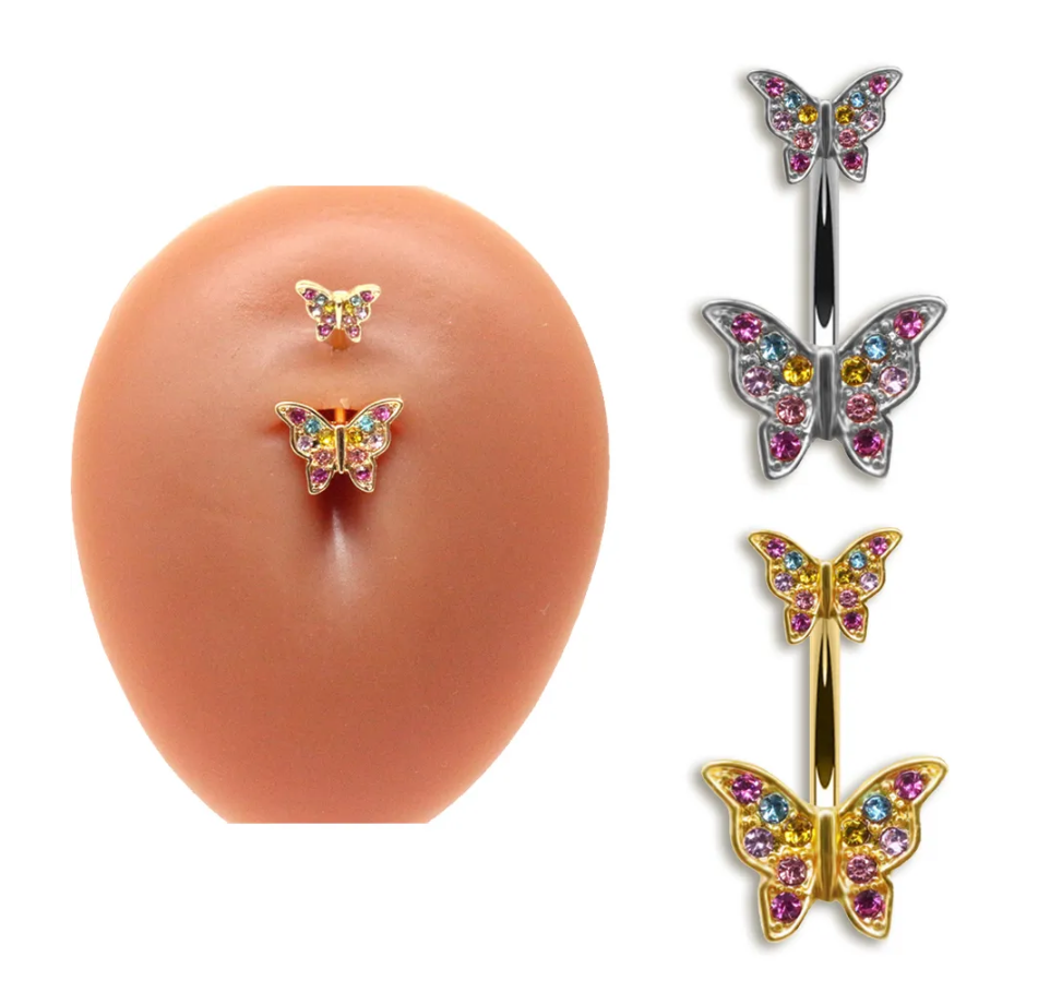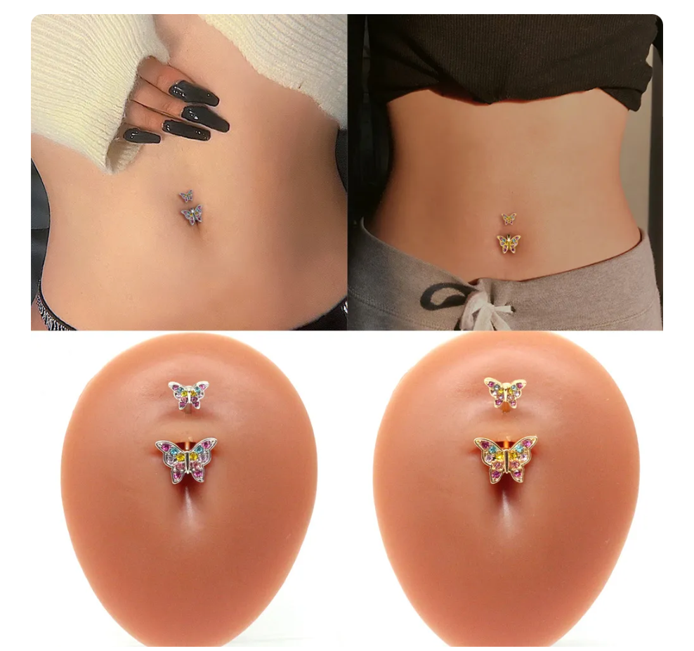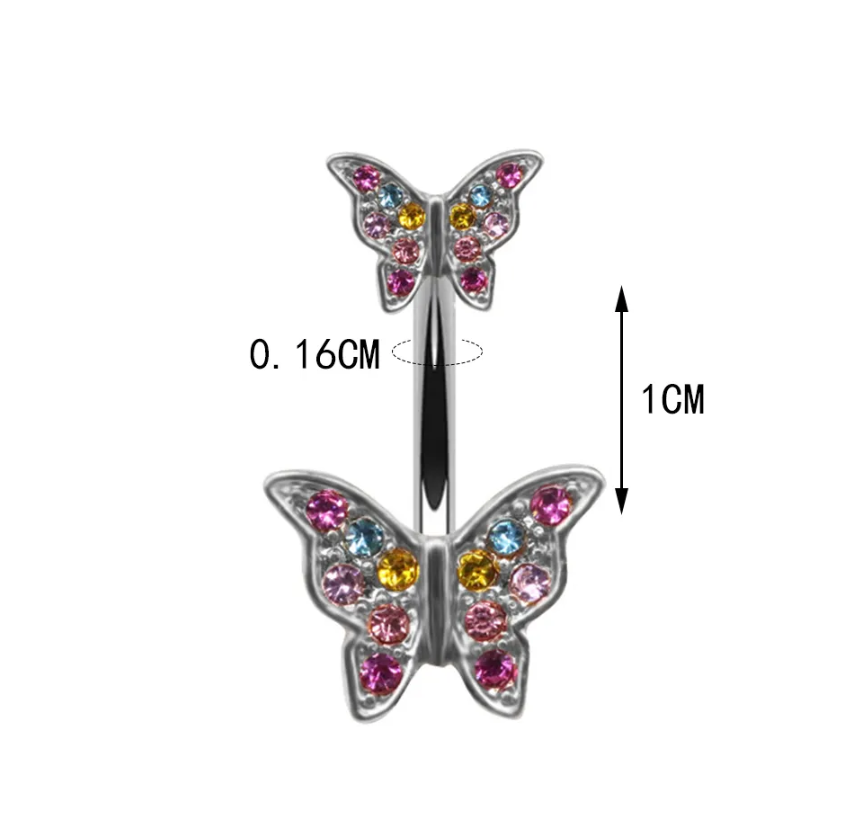 トレンディなバタフライペンダントリング,セクシーなボディピアス,ドリル,へそ,ゴシック,ウェディングジュエリー,1個