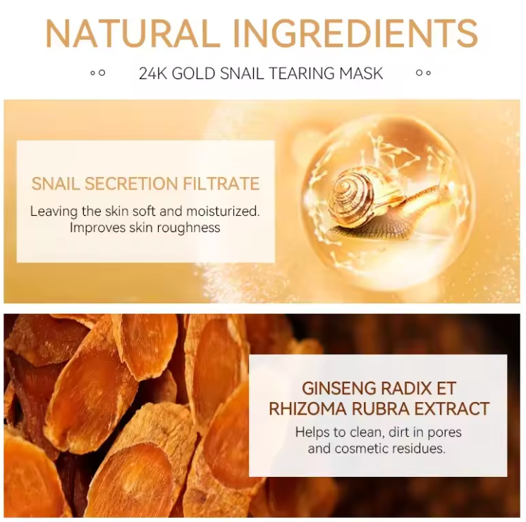 Package include:24K Gold Snail Tearing Mask *1pcs