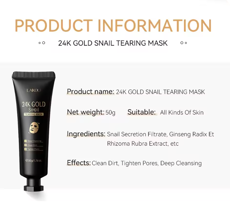 24K Gold SNAIL TEARING Mask Deep Cleansing Remove Blackhead Face Care 50g