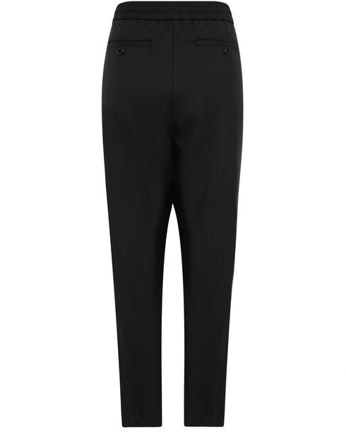 説明 : ハイウエストパンツ, ボタンとファスナーによる開閉, フロントにプリーツ.