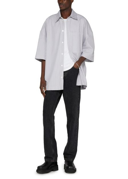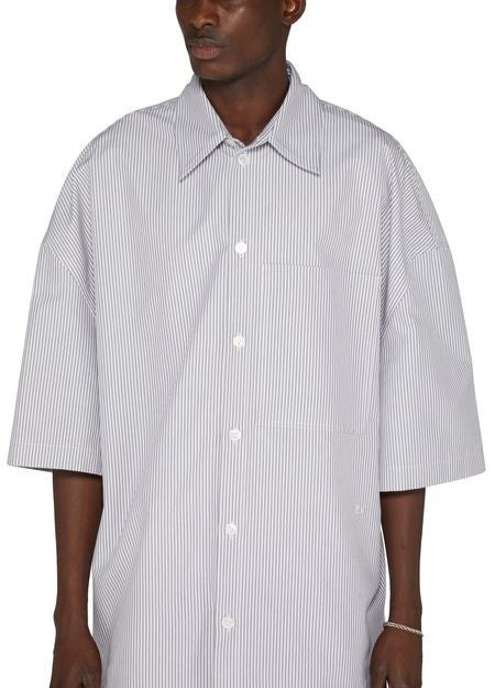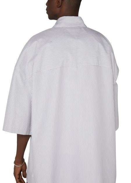 説明 : ブレストポケット, ラベルにロゴ, 七分袖, シャツ, ボーダー柄, シャツカラー, フロントボタン留め, ボタン留め.