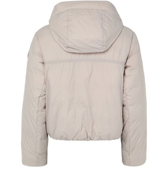 説明 : Crop, hood, long-sleeved, zipper closure, padded texture.